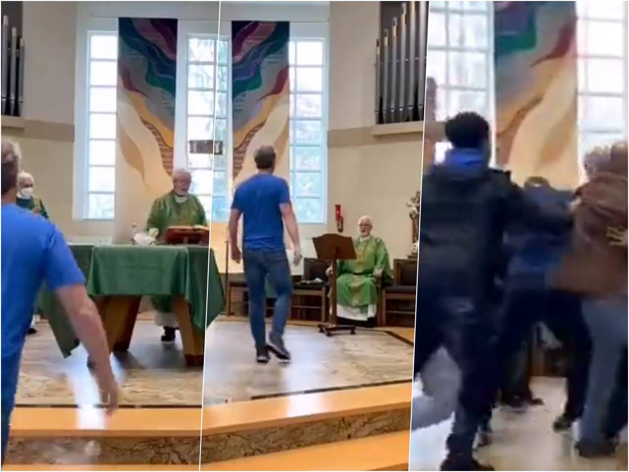 Sacerdote exhibe a hombre por no usar cubrebocas en misa y provoca campal