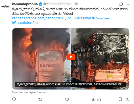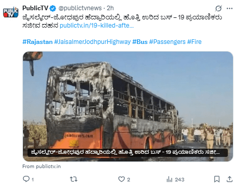 El incendio de un autobús en Jaisalmer es sumamente desgarrador. Expreso mis más sinceras condolencias a los afectados por este trágico accidente.