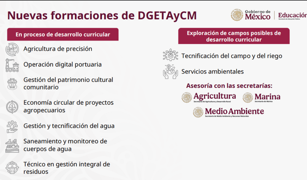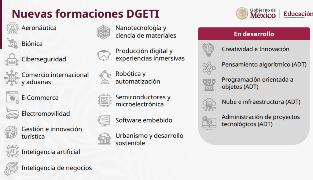 Por otra parte, se indicó que el Plan Integral del Sistema Nacional del Bachillerato 2026 contempla 20 nuevos Bachilleratos Tecnológicos, 52 ampliaciones en 31 entidades y 130 Ciberbachilleratos