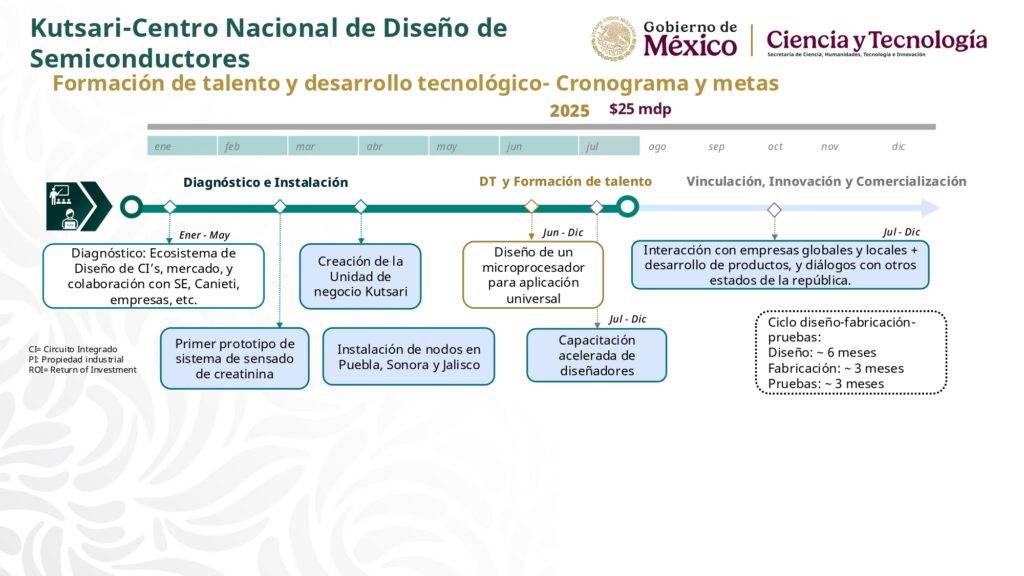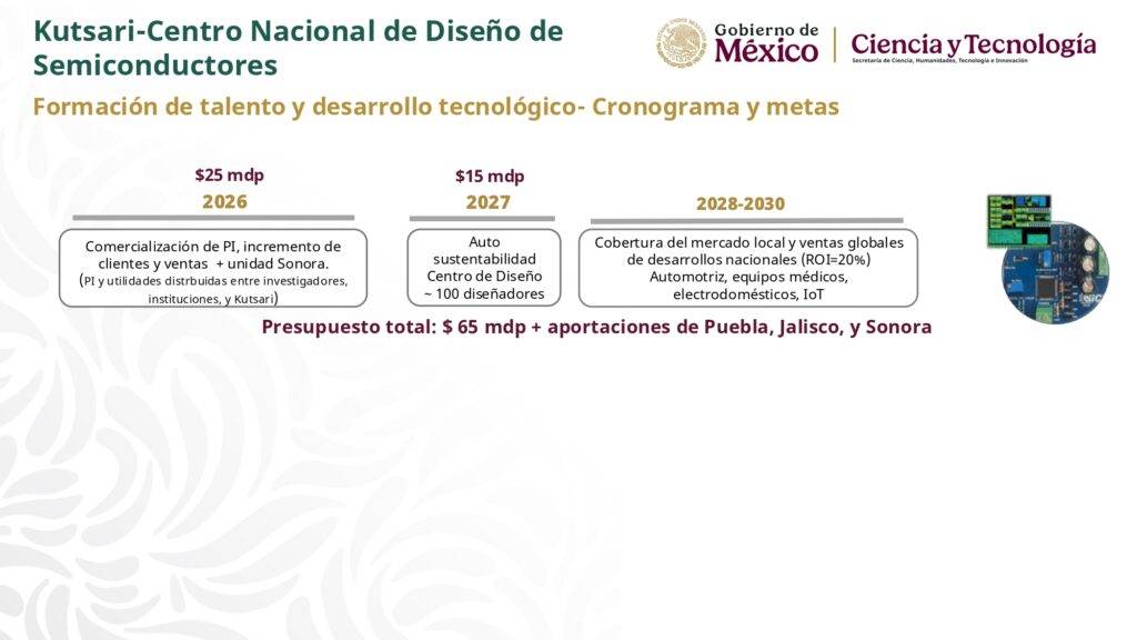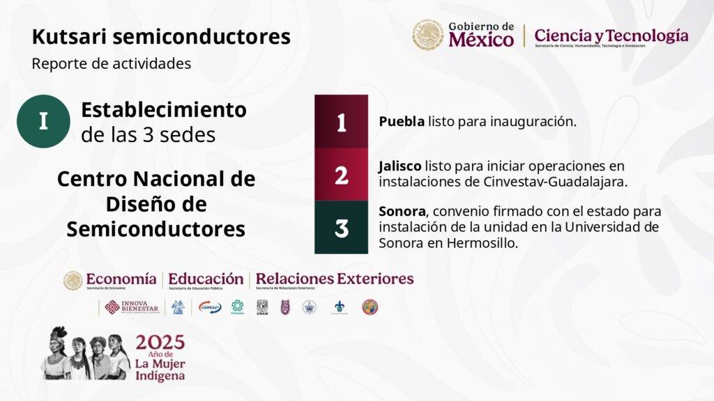 Asimismo, puntualizó que el Centro Nacional de Semiconductores Kutsari, el cual ya tiene tres sedes en Puebla, Jalisco y Sonora.