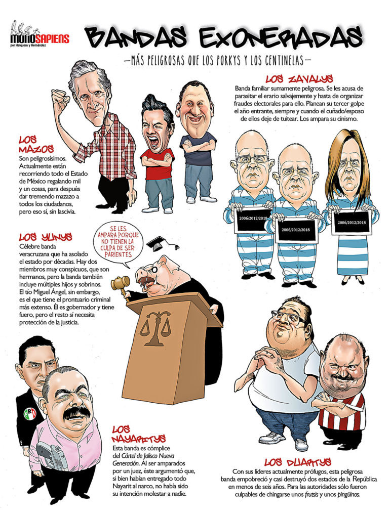 En el más reciente cartón de MonoSapiens se presentan a las bandas criminales que más allá de los Porkys y Los Centinelas, son ‘Los Mazos’, ‘Los Zavalys’, ‘Los Yunys’, ‘Los Nayaritys’ y ‘Los Duartys’.