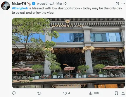 El cielo en Bangkok se ve considerablemente más claro que en meses pasados, aunque aún tiene contaminación moderada