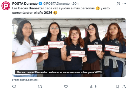 Regeneración, 20 de enero 2026– Las Becas para el Bienestar 2026 brindarán ventajas a más de 22 millones de estudiantes en México, lo que marca un récord desde el nivel básico, abarcando primaria, secundaria y preparatoria, hasta el nivel superior como las universidades.