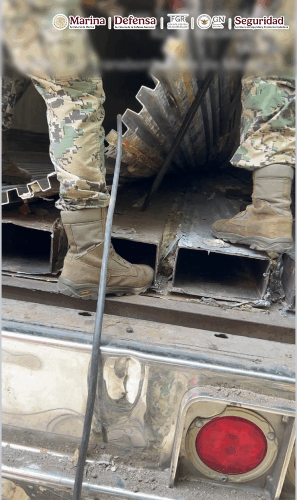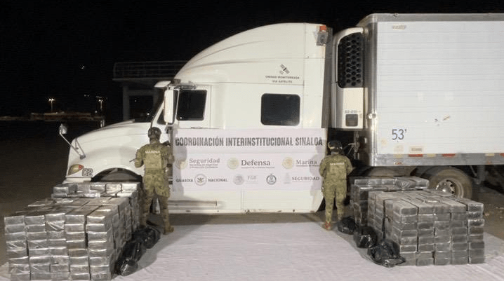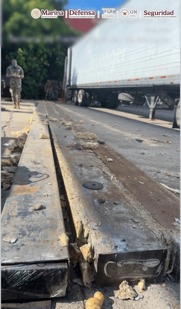 «… efectivos de la Unidad Naval de Protección Portuaria de Mazatlán, al inspeccionar un tractocamión con equipo de rayos “X”…»