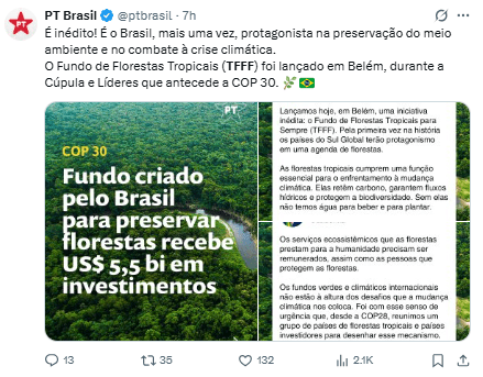El TFFF es estratégico para Brasil, porque se ha convertido en un escaparate diplomático principal del país en la COP30.