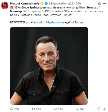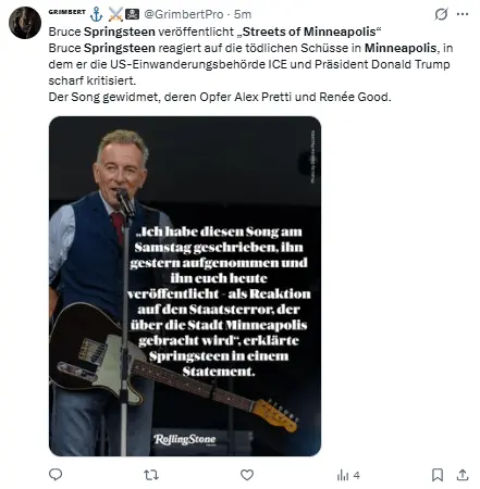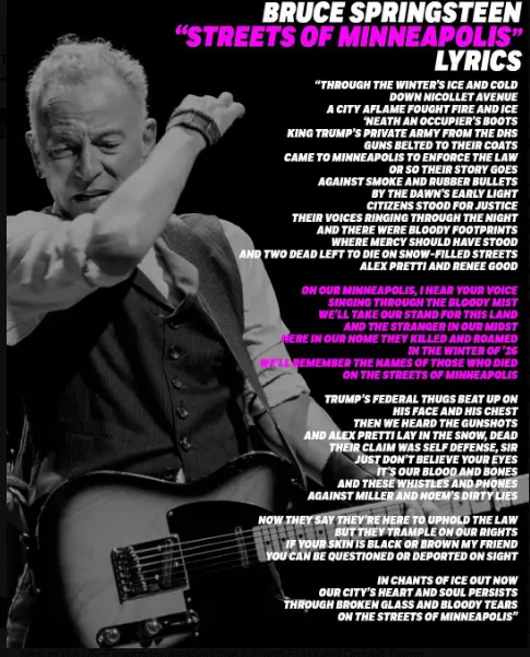 Regeneración, 29 de enero 2026– Después del asesinato de Alex Pretti por la Patrulla Fronteriza en Minneapolis, Bruce Springsteen respondió con una canción de protesta.