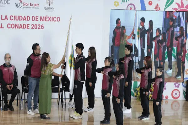 Regeneración, 13 de abril de 2026.– La Jefa de Gobierno encabezó la ceremonia de abanderamiento de la delegación que representará a la Ciudad de México.