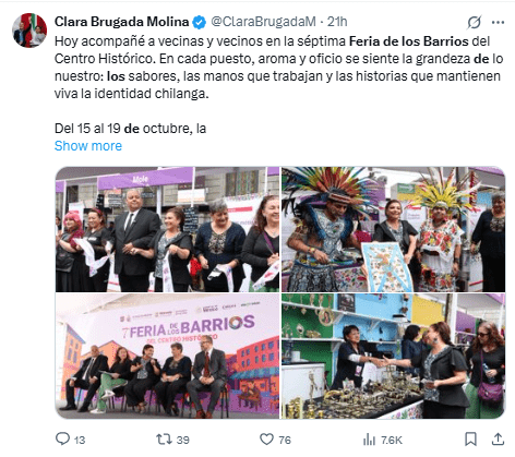Regeneración, 16 de octubre 2025– Clara Brugada encabezó la inauguración de la séptima edición de la Feria de los Barrios del Centro Histórico de la Ciudad de México, que se llevará a cabo del 15 al 19 de octubre.