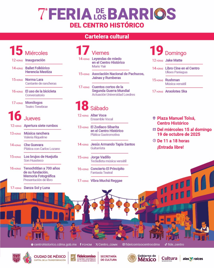 Ofrece una variedad de productos, artículos, alimentos y artesanías de negocios tradicionales, del 15 al 19 de octubre de 2025, en la plaza Tolsá.