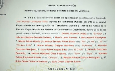 Cabe destacar que se recuerda que esta misma dependencia en su momento solicitó la aprehensión de otros 12 miembros de un grupo delictivo del Cártel de Sinaloa.