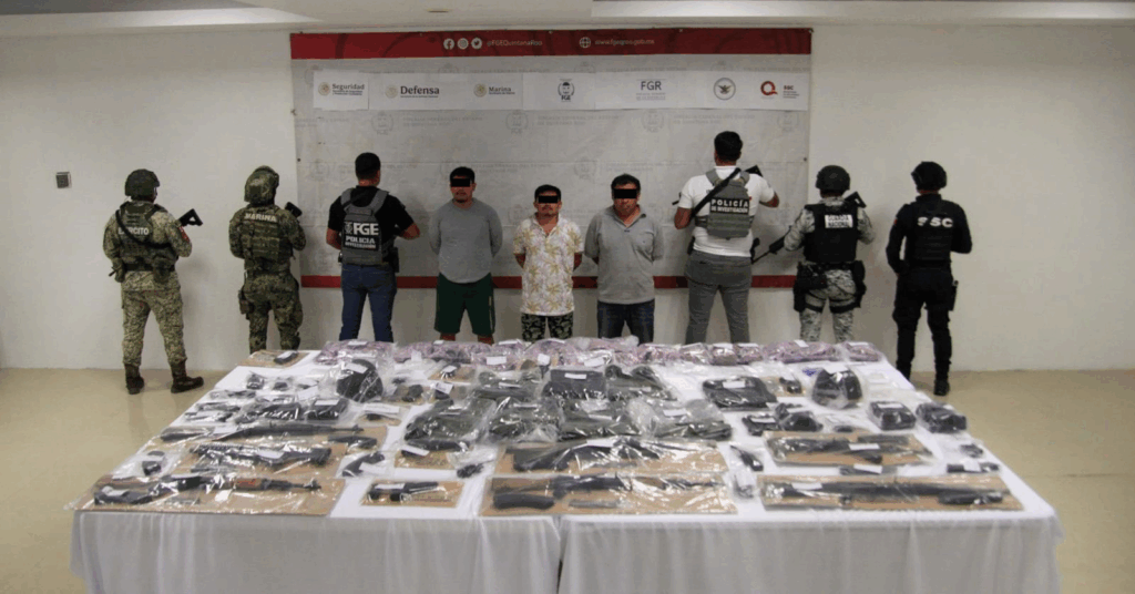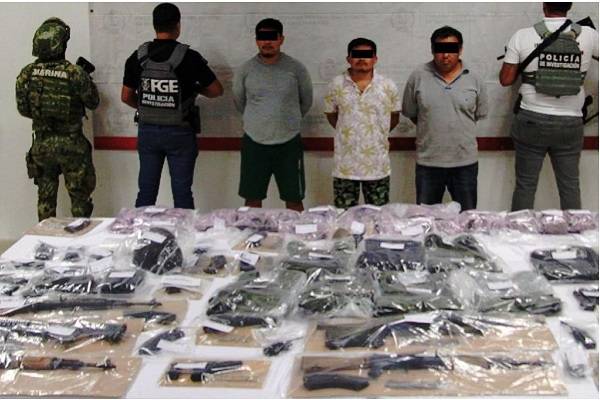 Tulum: Desintegran célula delictiva Los Compich dedicados a narco y extorsión. Detienen a 3 en Monterrey, con 64 armas y miles de cartuchos