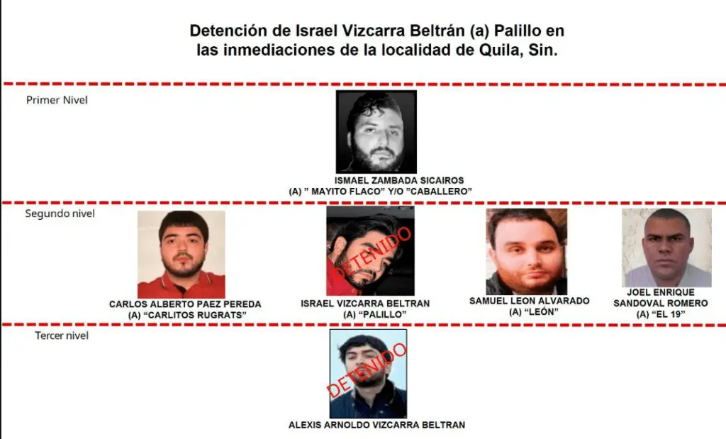 Por otra parte, se indica en redes que Israel Vizcarra Beltrán es identificado como jefe de plaza en la zona de El Dorado y presunto líder de una celular dedicada a la elaboración de drogas.