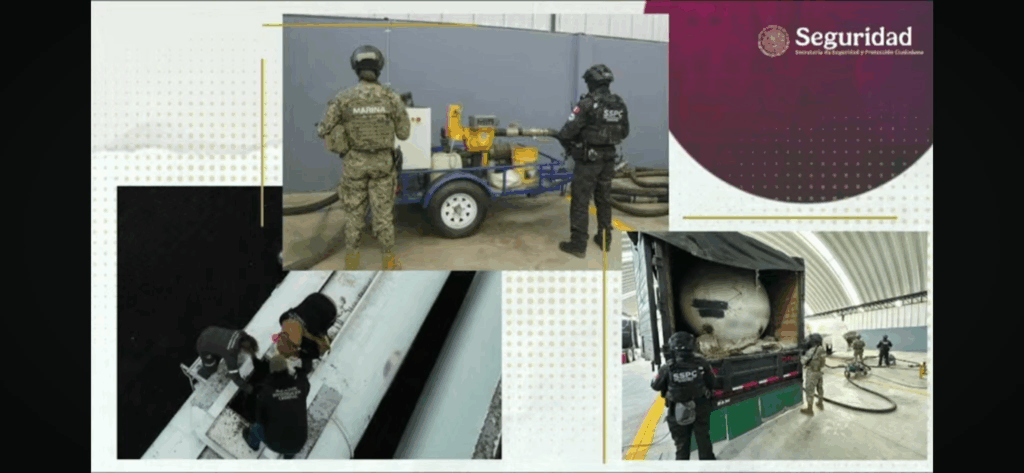 Regeneración, 30 de junio de 2025. El Gabinete de Seguridad informó del desmantelamiento de una red que de saqueo de ductos, para el robo de combustible a gran escala.