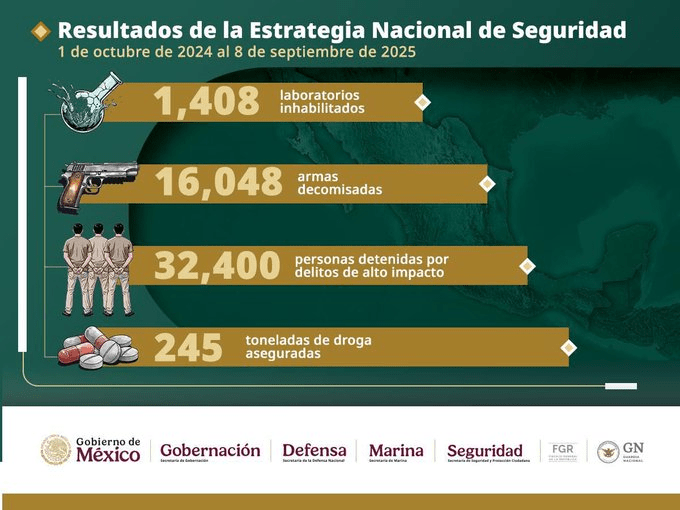 En una acción de Guardia Nacional y Defensa, Marina, Protección Ciudadana e Inteligencia de México.