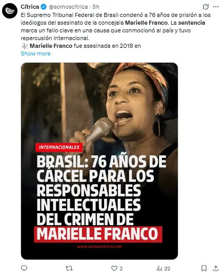 De acuerdo con el tribunal superior, Franco fue asesinada para enviar un «mensaje» a la clase política de Río.