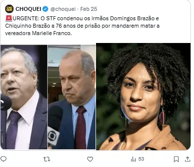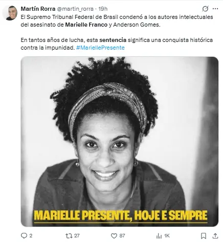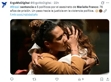 Regeneración, 26 de febrero 2026– Este miércoles, el Supremo Tribunal Federal de Brasil sentenció a dos exdiputados a 76 años de prisión por haber ordenado el asesinato de la concejala Marielle Franco y su chofer, Anderson Gomes, en 2018, un crimen que reveló las conexiones entre la política y el crimen en Río de Janeiro.