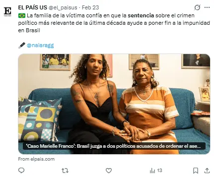 Porque la sociedad piensa que este país puede ser mucho mejor de lo que es hoy. ‘Justicia para Marielle’ no es solo un lema, es una causa de vida.