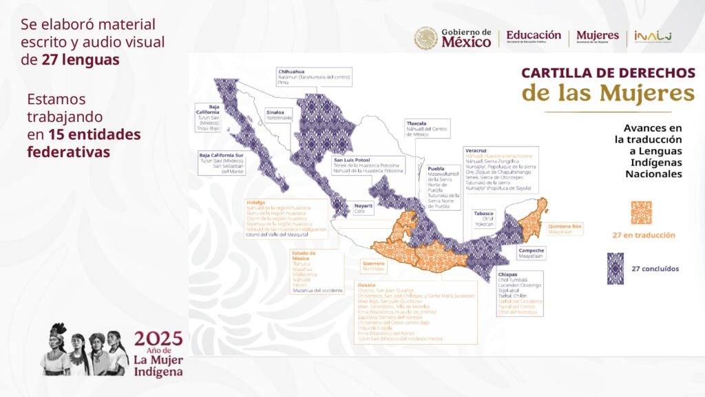 Además, se continúa trabajando en 27 lenguas más en 18 entidades federativas.