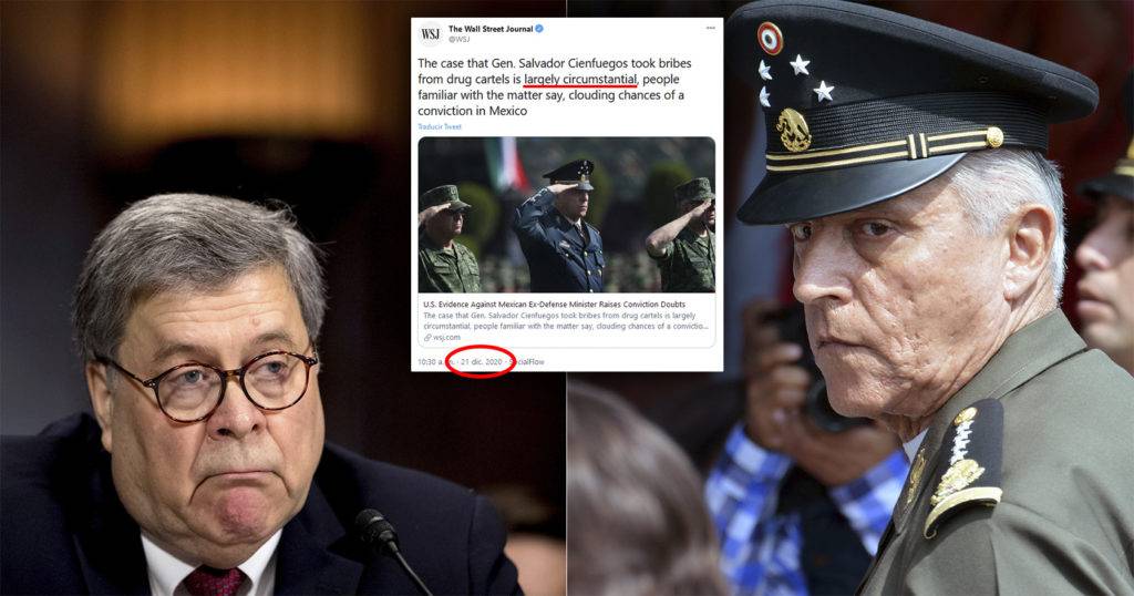 Así lo revela un artículo del Wall Street Journal del 21 de diciembre de 2020, que señala a la mayor parte de la evidencia en contra del general como «circunstancial». Esto significa que no se trata de evidencia directa, sino que requiere de especulación, todo esto alrededor de los supuestos sobornos que recibió del crimen organizado.