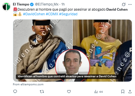 El pasado 13 de octubre, el abogado David Cohen fue asesinado a balazos cerca de Ciudad Judicial, alcaldía Cuauhtémoc