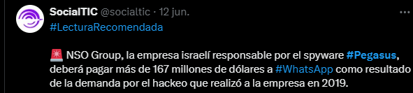 Finalmente, se recuerda que el software Pegasus es un programa de cómputo producido por la empresa israelí NSO Group, con sede en Israel.