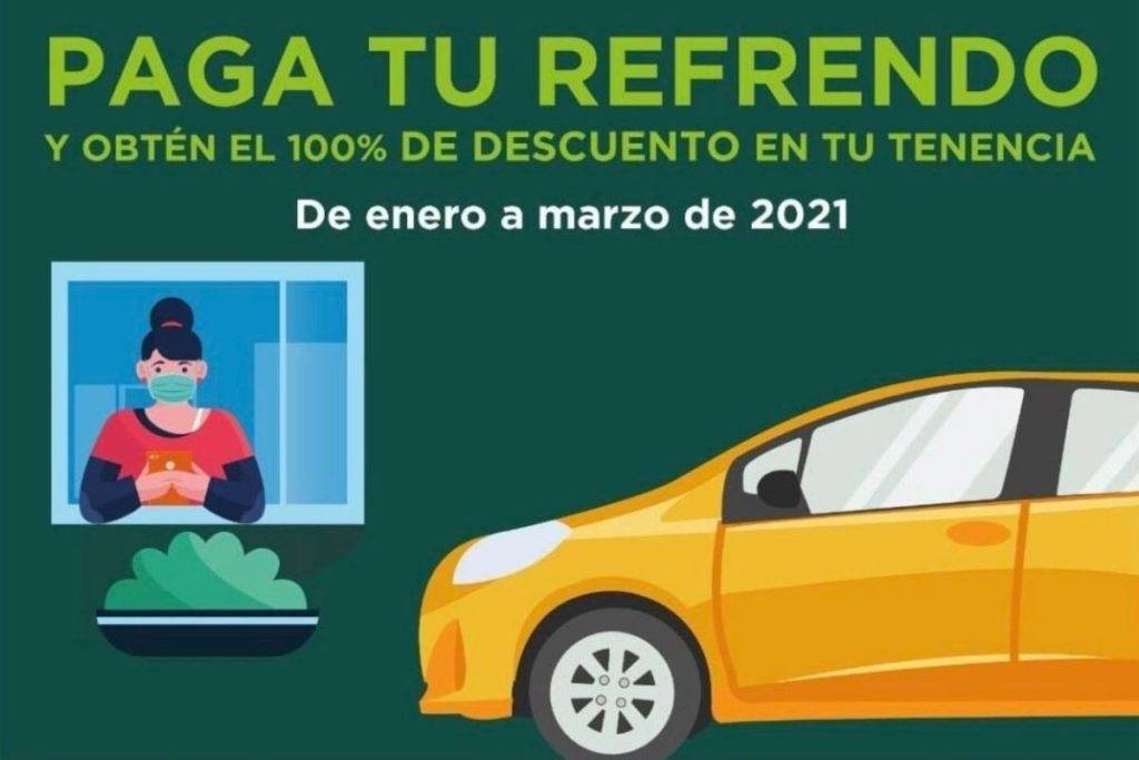 Otro beneficio es el descuento del 100% del impuesto de la Tenencia Vehicular al pagar el refrendo, aplicado para los vehículos cuyo valor no exceda de 250 mil pesos, IVA incluido.