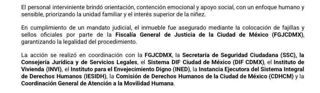 Esta intervención surgió tras una denuncia ciudadana en las jornadas de Zócalo Ciudadano. El Gabinete de Atención y Prevención contra el Despojo coordinó el operativo.