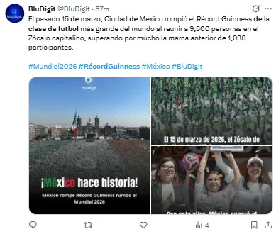 Regeneración, 17 de marzo 2026– Este domingo, el Gobierno de la Ciudad de México hizo historia en el Zócalo al establecer un récord Guinness con la clase de fútbol más grande del mundo, un evento masivo que reunió a miles de asistentes en preparación para el Mundial 2026.