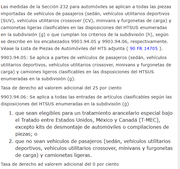 Y es que había productores a los que se les aplicaba doble arancel y ahora se reconoció que eso no es posible por lo que descontará la parte de la fabricación hecha en México también.