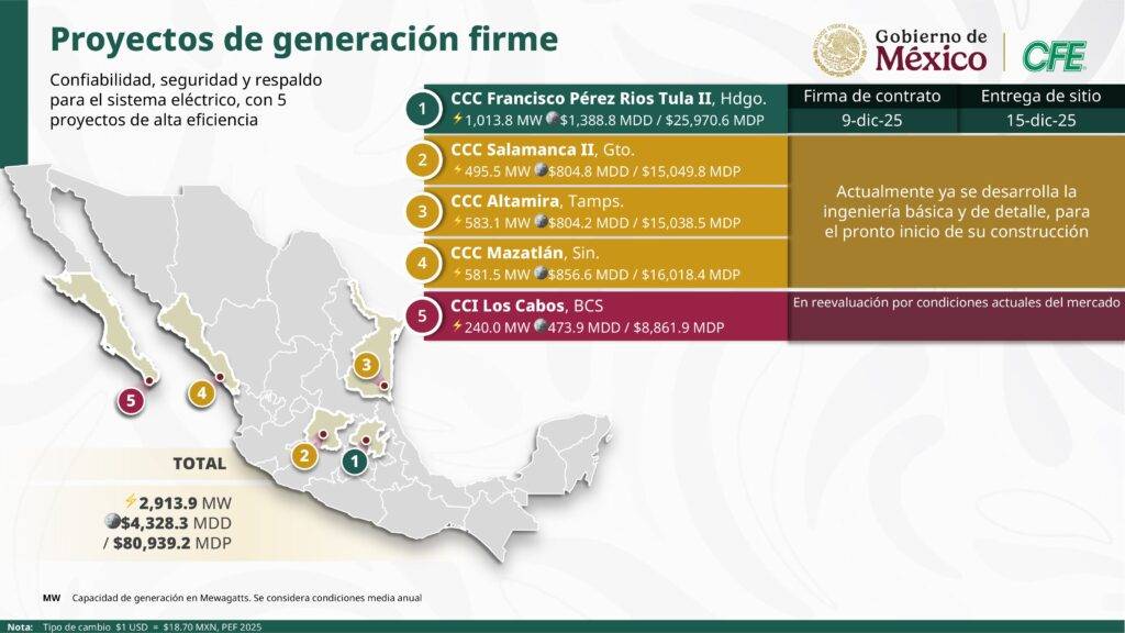 Puntualizó que la Central de Combustión Interna (CCI) de Los Cabos, Baja California Sur, se reevalúa por las condiciones actuales del mercado, con el propósito de salvaguardar un correcto desarrollo de sus obras.