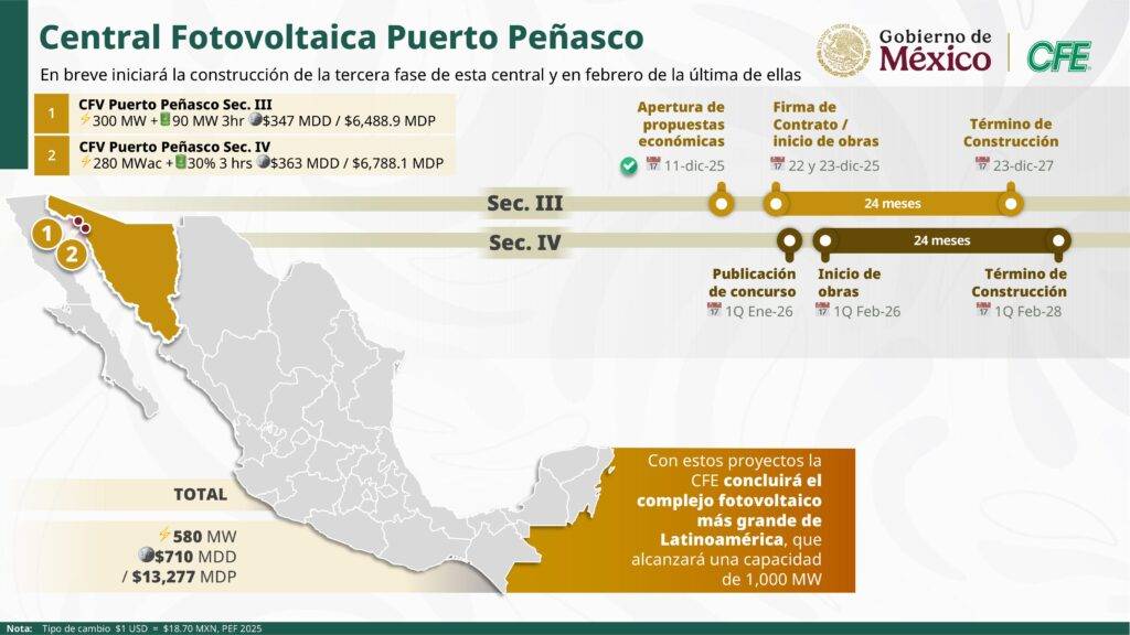 Además, anunció que la próxima semana iniciará la construcción de la tercera fase de la Central Fotovoltaica Puerto Peñasco.