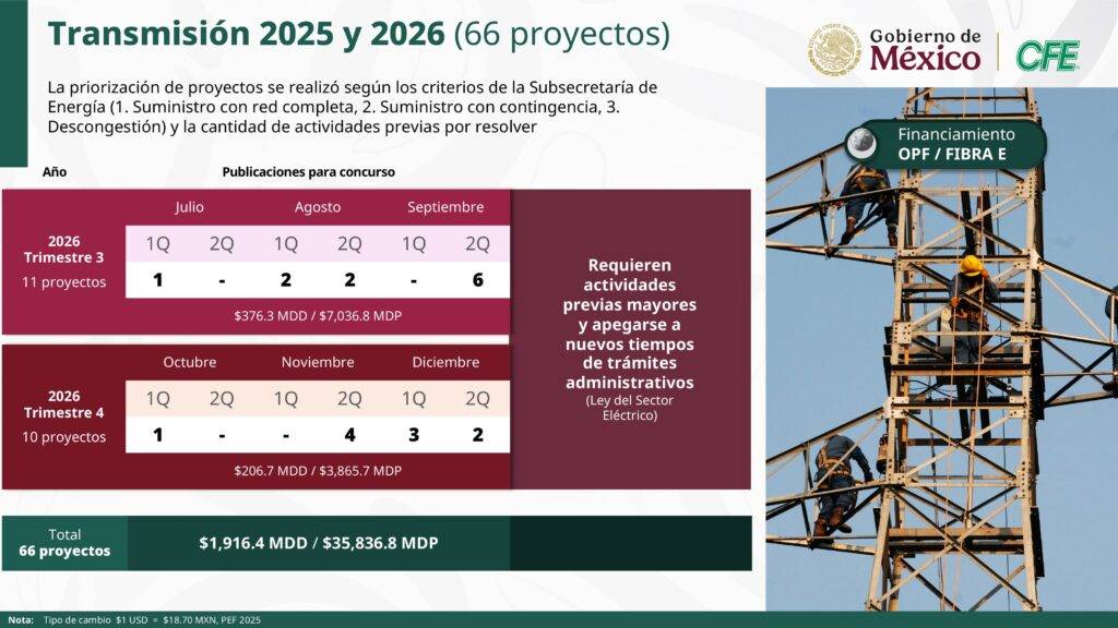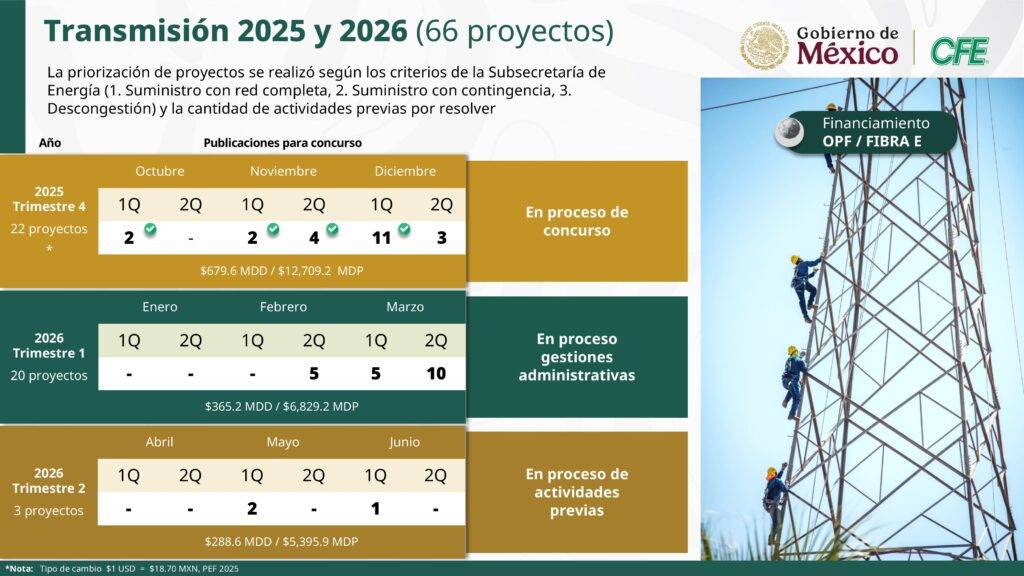 Como parte de los proyectos de transmisión, recordó que son 66 proyectos, de los cuales 22 están en proceso de concurso.