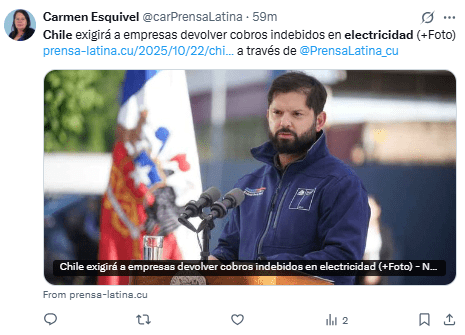 Regeneración, 22 de octubre, 2025– El escándalo ocasionado por sobreprecios que generadoras eléctricas han cobrado desde hace ocho años a chilenos se agravó, ya que empresas transmisoras admitieron que facturaron unos 115 millones de dólares indebidamente entre 2020 y 2024.