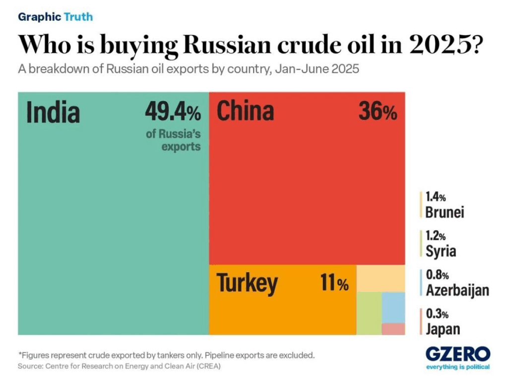 Pero las importaciones chinas de petróleo ruso son incluso mayores que las de la India .