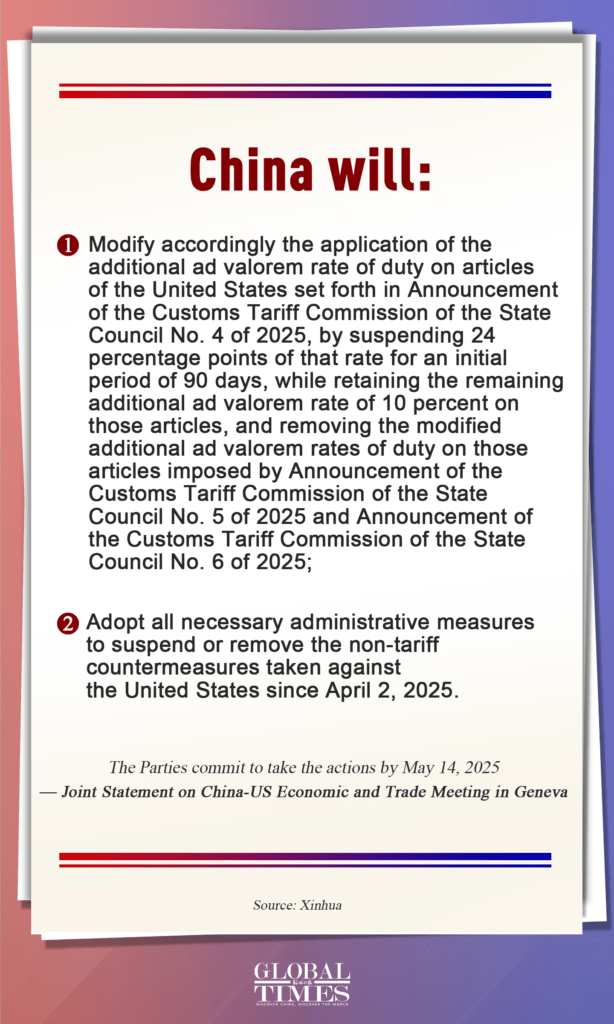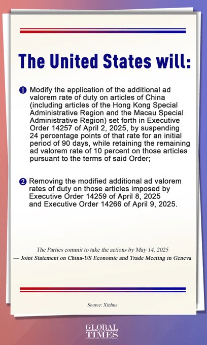 China y EE.UU negociaron en Ginebra: 90 días de aranceles reducidos. EE.UU baja impuesto de 125% a 10%, pero mantiene otro 20% por fentanilo