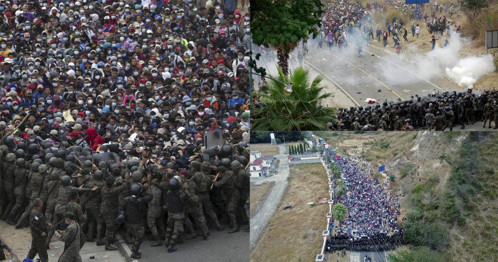 Regeneración, domingo 17 de enero, 2021. Miembros de la caravana migrante de Honduras chocaron con la Policía de Guatemala esta mañana, en su travesía hacia México, de donde partirían a Estados Unidos. Por Dante García Berlanga, @limpicatto.