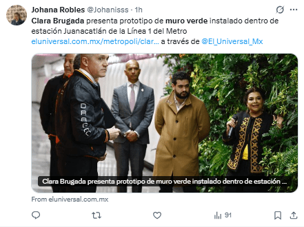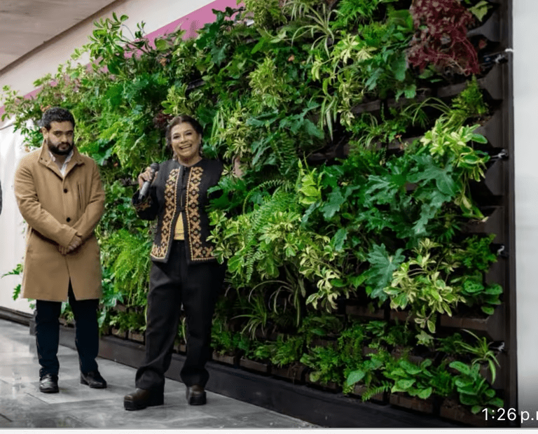 Regeneración, 9 de octubre 2025– La jefa de Gobierno, Clara Brugada, presentó un prototipo de muro verde que fue instalado en la estación Juanacatlán de la Linea 1 del Metro. Informó que se analizará cómo funciona y de ser efectivo, se pondrá en estaciones del metro.
