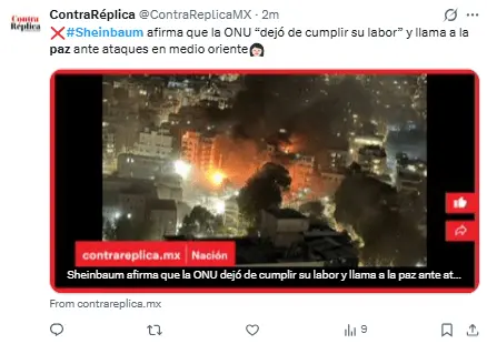 Por otra parte, Sheinbaum afirmó que la Organización de las Naciones Unidas (ONU) no está cumpliendo adecuadamente su función de mediación y resolución de conflictos.
