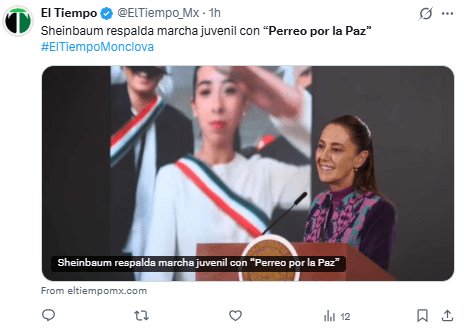 “Jálate al perreo por la paz”, posteó, invitando a más jóvenes a reunirse este 6 de diciembre, a las 8 de la mañana en el Caballito de Reforma, en la Ciudad de México.