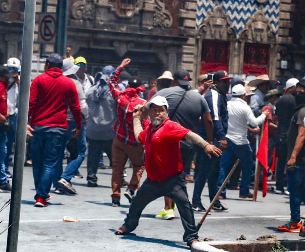 además, ante la presencia de los encapuchados los integrantes del magisterio disidente gritaban: «¡Provocadores!», «¡Fuera!», «¡Son los grupos de choque!».