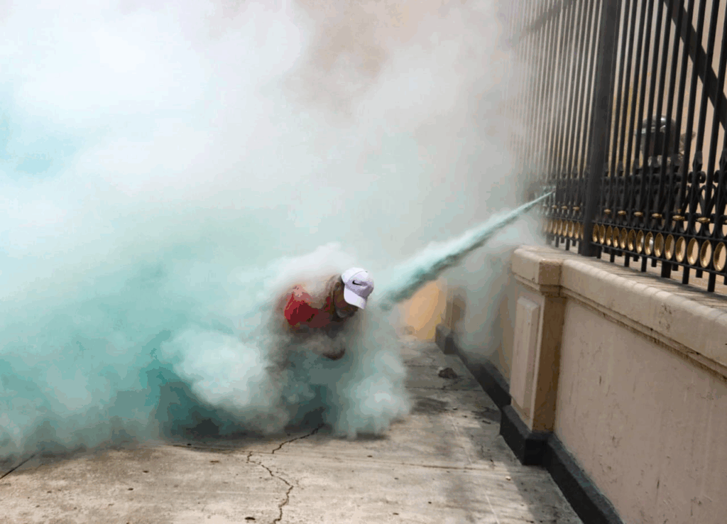 En tanto, elementos de seguridad utilizaron extintores para intentar evitar que las personas continuaran con sus acciones.