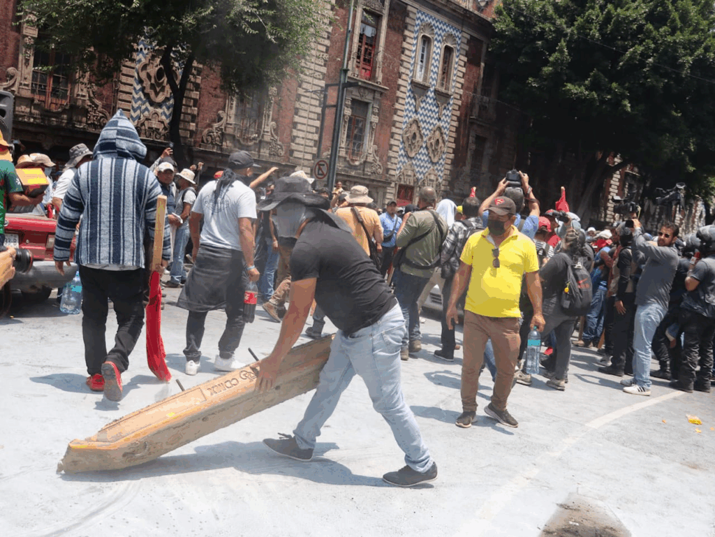 Lo anterior, luego de que estos intentaran romper una cadena con candado en la puerta de la Secretaría de Gobernación.