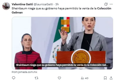Por su parte, la presidenta Claudia Sheinbaum calificó como «falsa» la afirmación de que el gobierno está permitiendo la venta de la colección.
