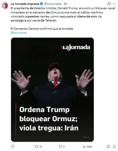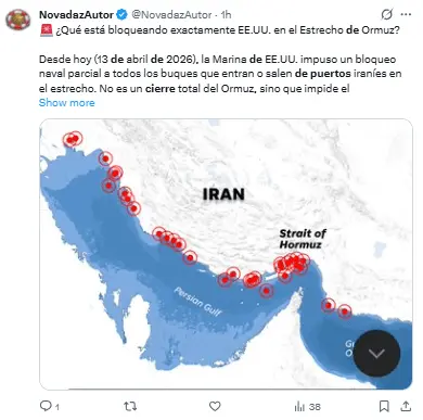 Regeneración, 13 de abril 2026– La armada naval estadounidense inició un cerco a todos los puertos iraníes en el estrecho de Ormuz, tras el fracaso de las negociaciones en Pakistán sobre el programa nuclear de Irán.