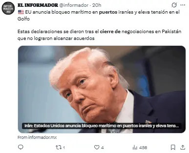 La acción ordenada por Trump limita el paso de barcos desde o hacia Irán tras el fallo en las discusiones nucleares en Pakistán