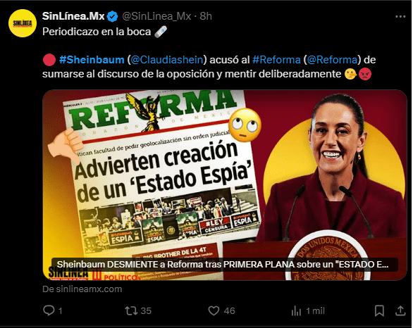 Legisladores de oposición la han calificado como “ley espía” y de “censura”, lo cual ha sido desmentido por la presidenta Claudia Sheinbaum.