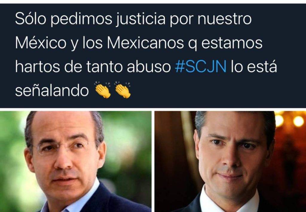 Regeneración, 1 octubre, 2020. En redes sociales usuarios han celebrado y otros han rechazado la decisión de la Suprema Corte de Justicia de la Nación (SCJN) al declarar constitucional la consulta para enjuiciar a expresidentes.