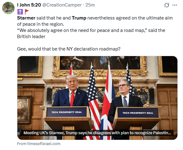 Trump dijo que uno de sus “pocos desacuerdos” con Starmer es sobre la promesa del Reino Unido de reconocer un estado palestino .