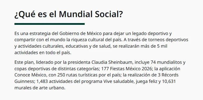 En tanto que la presidenta destacó que como parte del Mundial Social se construirán y rehabilitarán 4 mil 208 canchas este año.