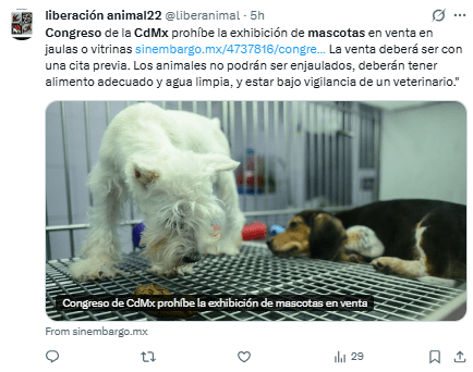 Regeneración, 12 de diciembre 2025– El Congreso de la Ciudad de México aprobó el jueves una iniciativa para prohibir la exhibición de mascotas en venta como perros y gatos, ya sea en vitrinas o jaulas, pues de no cumplirse esta medida los establecimientos serán multados con hasta 339 mil pesos.